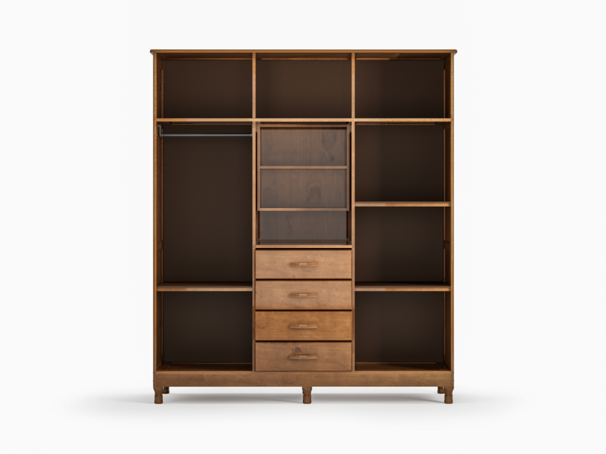 Roupeiro 4 portas em madeira com 4 gavetas e espelho com maleiro